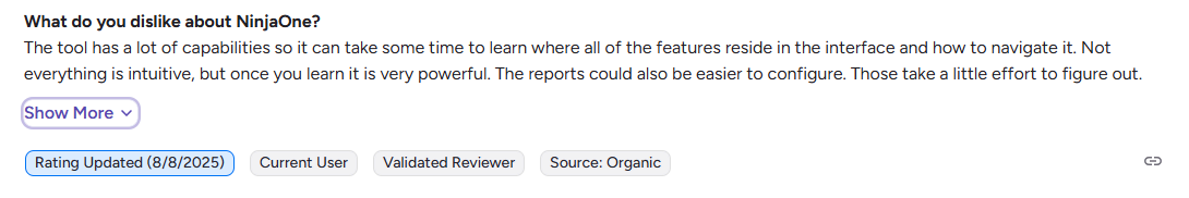 - Interface Has a Steep Learning Curve: NinjaOne offers a powerful feature set, but navigating the interface can be challenging for new users.