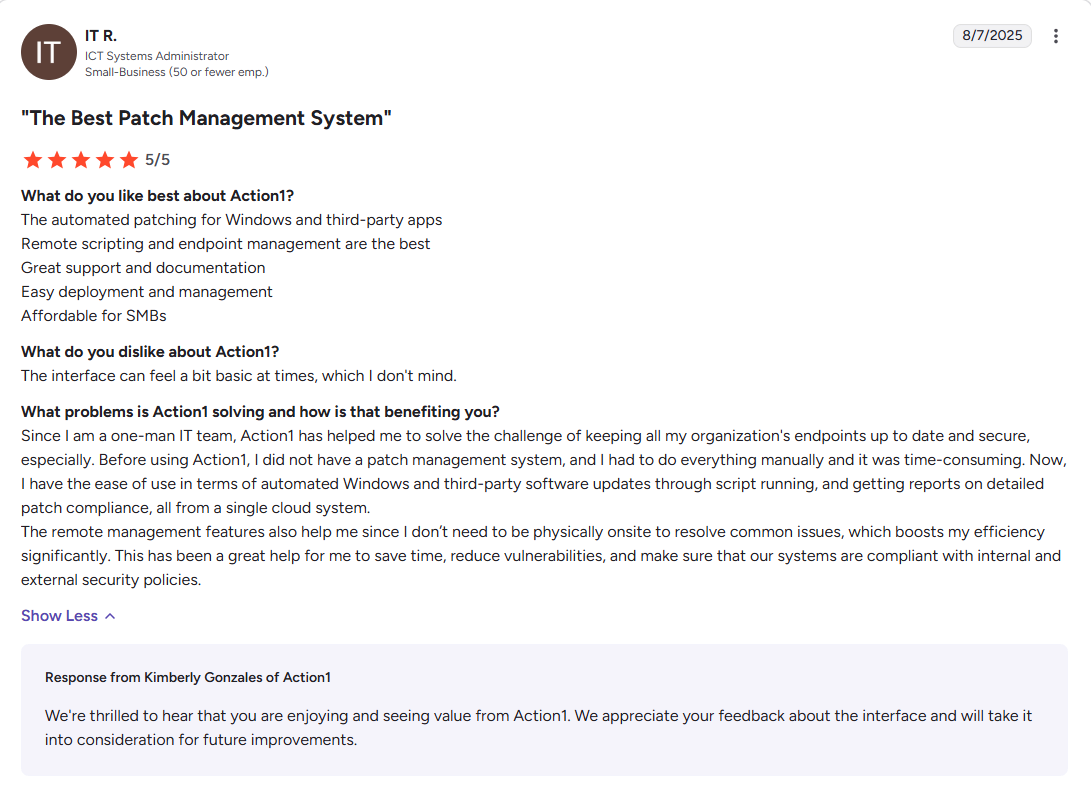 - #1 easiest-to-use patch management solution as ranked by independently verified customers on G2.