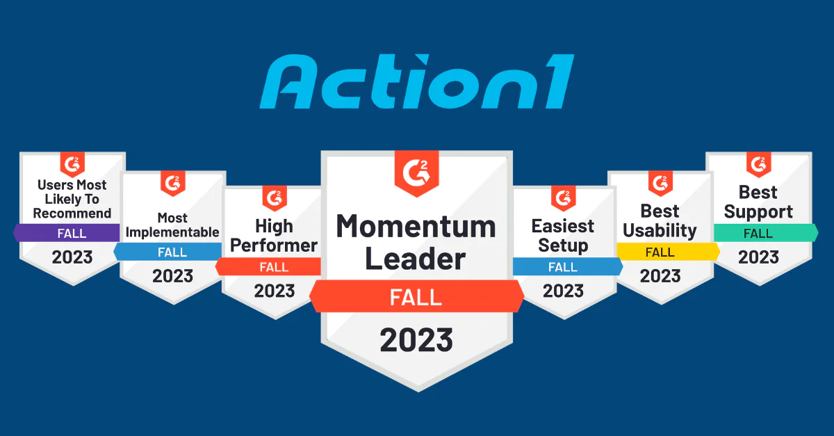 G2, the world’s largest and most trusted software marketplace, has recently published its Fall 2023 Report. This time, in addition to maintaining its position as a High Performer in Patch Management for six consecutive quarters, Action1 has also been recognized as a Momentum Leader in the Patch Management category. In total, our platform has secured an impressive 81 badges across five categories.