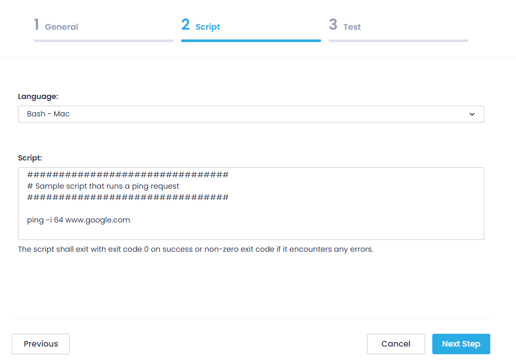 - Specify the script language (PowerShell, CMD, or Bash). To learn more about certain script types, refer to the Examples section below.